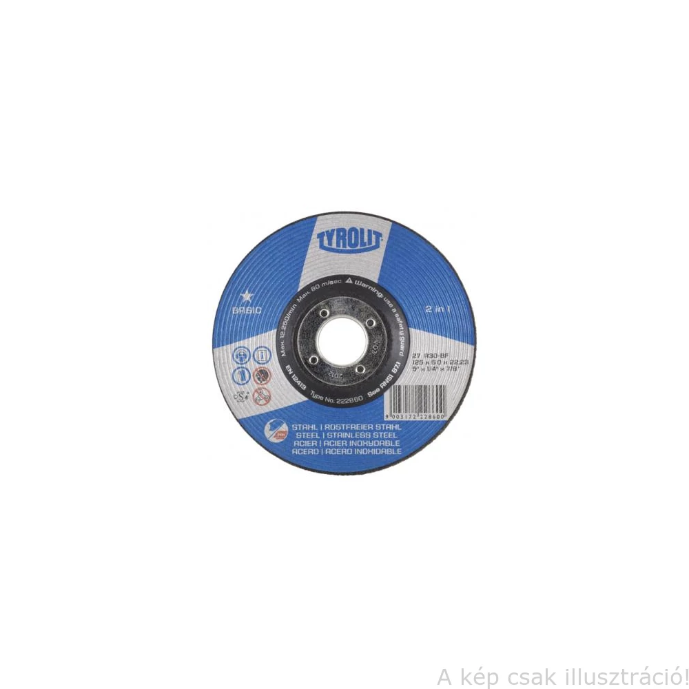 115x6,0x22,2mm Tisztítókorong Tyrolit Basic A30BF INOX (10db/doboz) 12091300