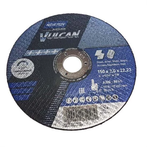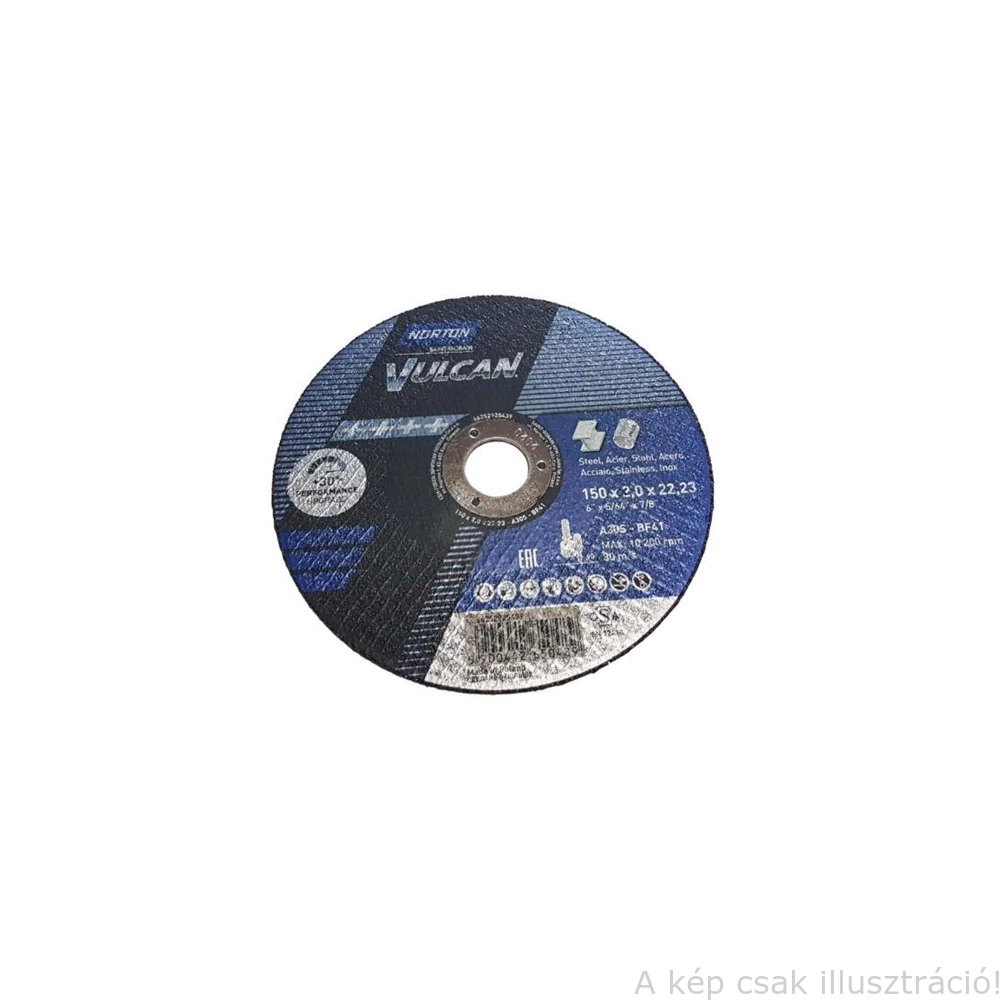150x2,0x22,2mm vágókorong Norton Vulcan kék (A30S-BF41) Acél + Inox 2in1 (25db/csomag) 35010187