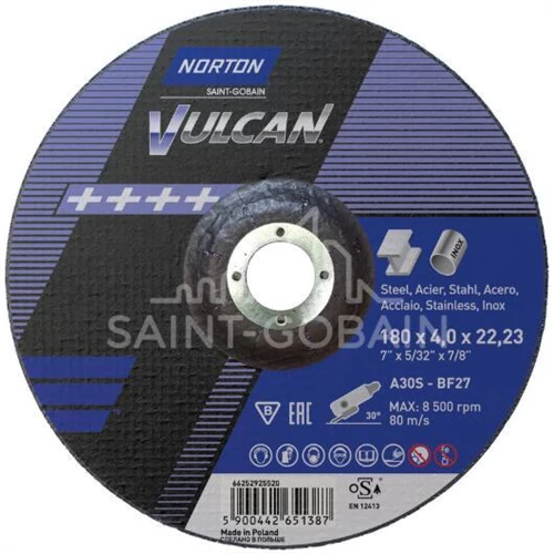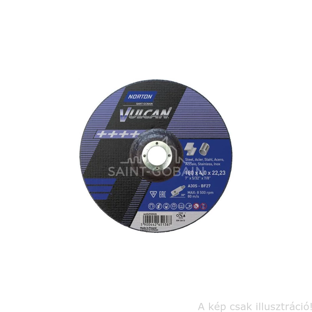 180x4,0x22,2mm Tisztítókorong Norton Vulcan (A30S BF27) acél+ inox, 20 db/cs.