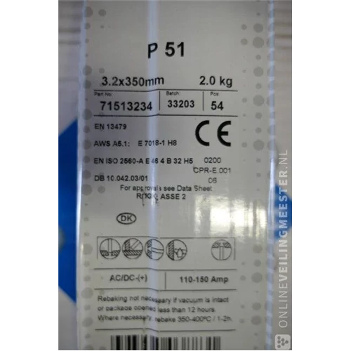 szabványok szerinti besorolás ( Classification) : EN ISO 2560-A E 46 4 B 32 H5, AWS A5.1 E 7018-1 H8 Jóváhagyások (Approvals): CE ABS 3, 3Y LR 3m, 3Ym, H5 GL 3Y H5 TÜV DNV 3Y H5 BV 3 Y HH