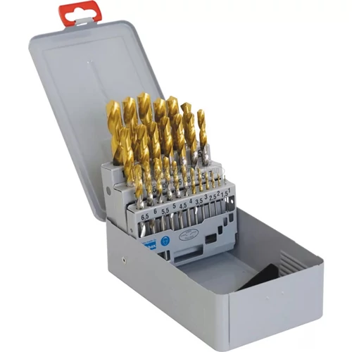 Labor Metal Drill Set DIN338 HSS-R Roll Forged 25-piece 1-13mm x0.5mm. For drilling in most common steel types, high fexlibility and break resistance.
