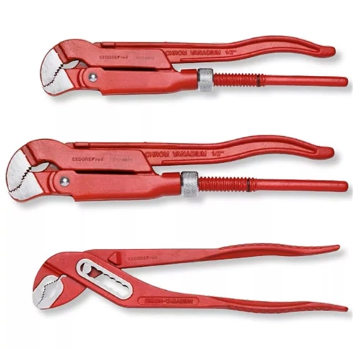 GEDORE R27140015-ös és GEDORE R27140020-as csőfogók: S-alakú pofával, ideális kör keresztmetszetű tárgyak megfogására és tartására