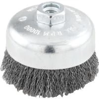 These brushes are ideally suited for use on stationary machines, pneumatic grinders and electric tools. Crimped Wire Cup brushes are useful for cleaning large surface plates, for rust removal or concrete surface conditioning work. These brushes are typically mounted on angle grinders. In work sites, they may also be mounted on stationary machines.