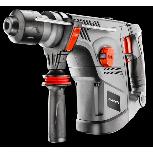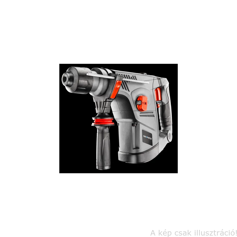 A profi háromfunkciós, 900 W teljesítményű GRAPHITE SDS+ vésőkalapács (kat. sz. 58G858) nélkülözhetetlen a szerelési és a bontási munkákban. Képes fúrásra, pneumatikus ütőművel van felszerelve véséshez, lehet vele vakolatot, csempét levésni is. A maximális, 4,2 J ütési energia határozott fölényt nyújt olyan anyagokkal szemben is, mint a beton, a tégla vagy a kő. A névleges fordulatszámon a maximális ütési frekvencia 2 800 perc⁻¹, a maximális fordulatszám fúrásnál 750 perc⁻¹. A vésőkalapács szerkezetét nyomatékhatároló tengelykapcsoló védi az esetleges túlmelegedéstől. A kétpontos rezgéscsillapító rendszerrel ellátott fő markolat csúszásmentes bevonatot is kapott. A főorsóház magnéziumötvözettel megerősített. Ezen felül a szerszám kényelmes, kétujjas kapcsolóval, a hálózatra csatlakoztatást kijelző LED-del, valamint az ütőmechanizmus kenéséhez könnyen hozzáférhető zsírzószemmel van felszerelve. A szénkefék csere szükségessé válását a gép házán elhelyezett jelzőlámpa mutatja. A vésőkalapácshoz mellékelt tartozékok: fúrószár, szerelőkulcs, elforgatható segédmarkolat, porvédő borítás, szerszámmentesen állítható fúrásmélység-határoló, flakon kenőzsírral, praktikus hordtáska. A CE tanúsítvány bizonyítja az európai szabványoknak való megfelelést.