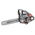 Profi GRAPHITE benzinmotoros fűrész, teljesítménye 2kW/2.7LE, a favágási tevékenység kényelmes és gyors eszköze. A fűrész minimális fordulatszáma 3000 percenkénti fordulat, a maximális fordulatszáma pedig 10500 fordulat percenként. A berendezés automata fékszerkezettel van ellátva, amely visszacsapáskor leállítja a lánc futását. A vezető sín kétpontos alátámasztása, valamint a lengéscsillapító rendszer stabillá teszi a munkavégzést. A fűrész integrált lánc kenő rendszerrel rendelkezik, bár megvan a lehetőség az olajfelhasználás kézi szabályozására is. A főtengely alumínium ötvözetből készült házban van rögzítve, valamint a kiváló minőségű műanyag burkolat óvja a szerkezet további részeit, amely ellenáll az ütésekkel szemben. A fűrész továbbá teljes körben csapágyazott forgó alkatrészekkel és két ponton alátámasztott biztonsági fékrendszer emelővel rendelkezik. A motor hatékony és egyenletes működéséről a CDI gyújtási rendszer gondoskodik. A fűrész készlethez tartozó tartozékok: vezetősín burkolat, vezetősín, OREGON lánc, karmos támaszték, benzin-olaj üzemanyag keverék tartály, csavarhúzó és szerelő kulcsok. Az európai standardoknak való megfelelőséget a CE tanúsítvány biztosítja. A GRAPHITE márka professzionális felhasználók elvárásait kielégítő elektromos szerszámok széles választékát kínálja.