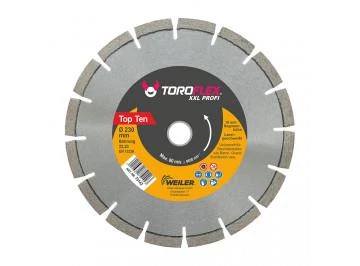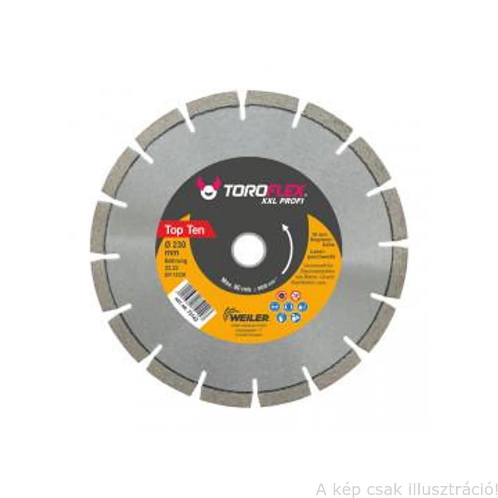 Gyémánt vágótárcsa vasalt betonra is 230X22,23mm/SH10 TOROFLEX XXXL PROFI (75142) 10 mm széles gyémánt réteggel WEILER 010301-0038