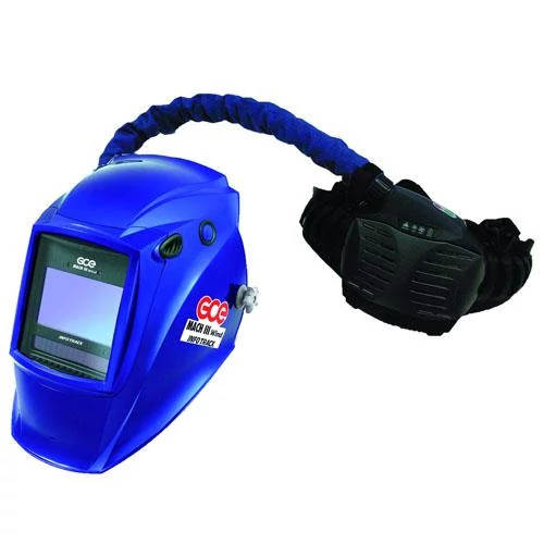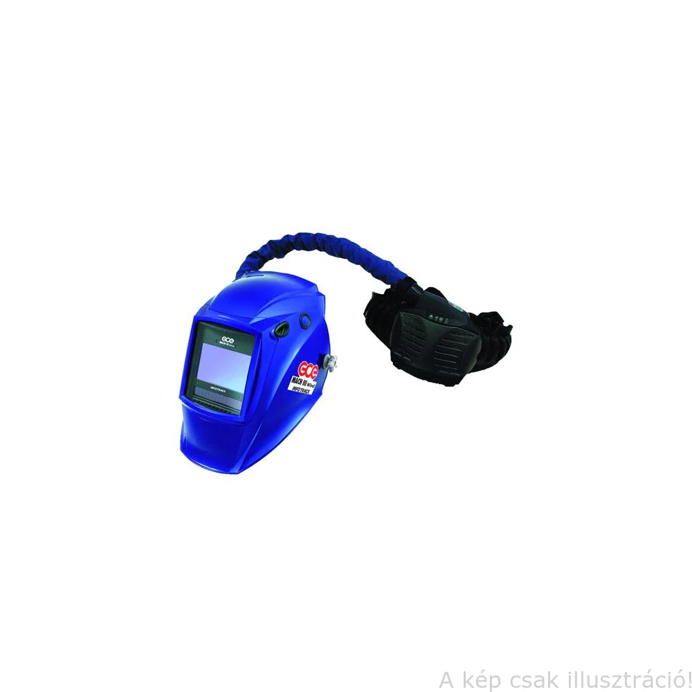 - 1db kék színű formatervezett, nagy látómezejű (95mmx59mm-es) digitális kijelzővel ellátott automata fejpajzs (frisslevegős csőcsatlakozással!) A fejpajzs a frisslevegős rendszer nélkül is automata fejpajzsként működik. További előnye a 4db fényérzékelő szenzor, melyek érzékenysége állítható, ezzel is biztonságosabbá téve a működést. A MACH 3 Wind automata fejpajzs fel lett szerelve mágneses térérzékelőkkel is, melyek az alacsony áramerősségű AWI hegesztés során is sötéten tartják a látómezőt.
