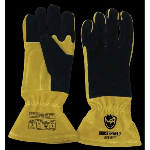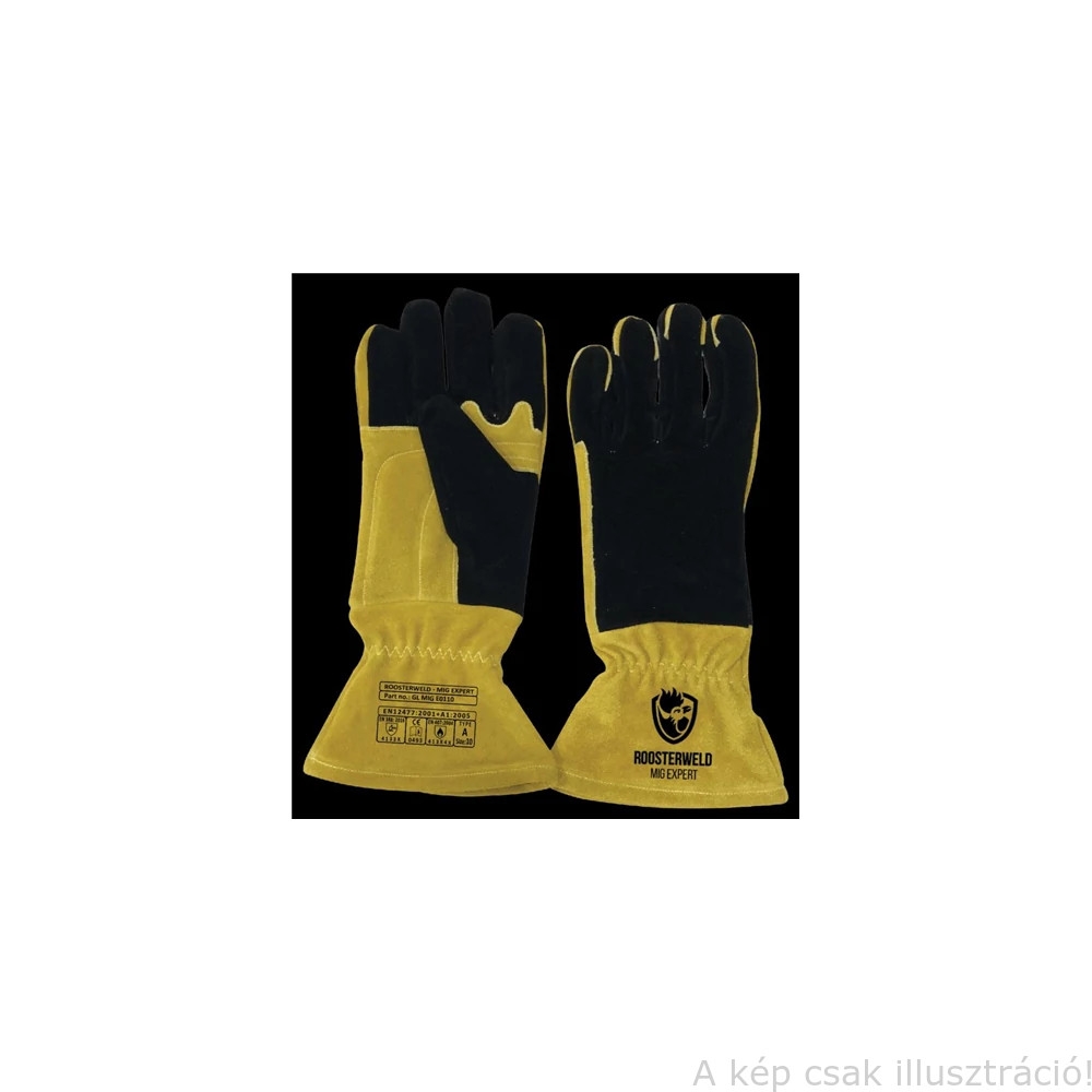 Hegesztő kesztyű kevlár erősítés, hasított marhabőr, teljesen bélelt, megerősített tenyérrész(10) ROOSTERWELD MIG EXPERT (sárga-fekete)