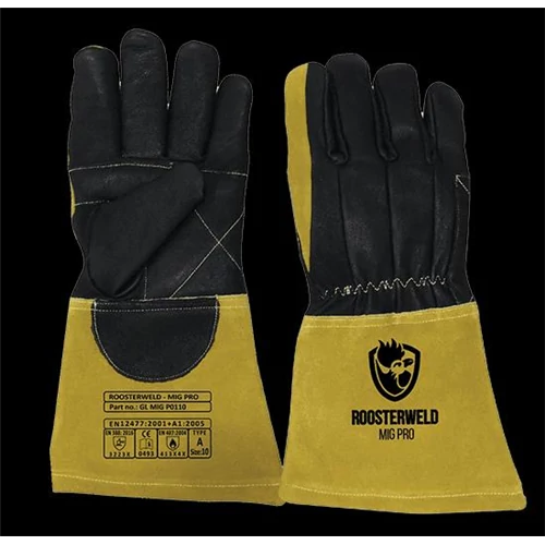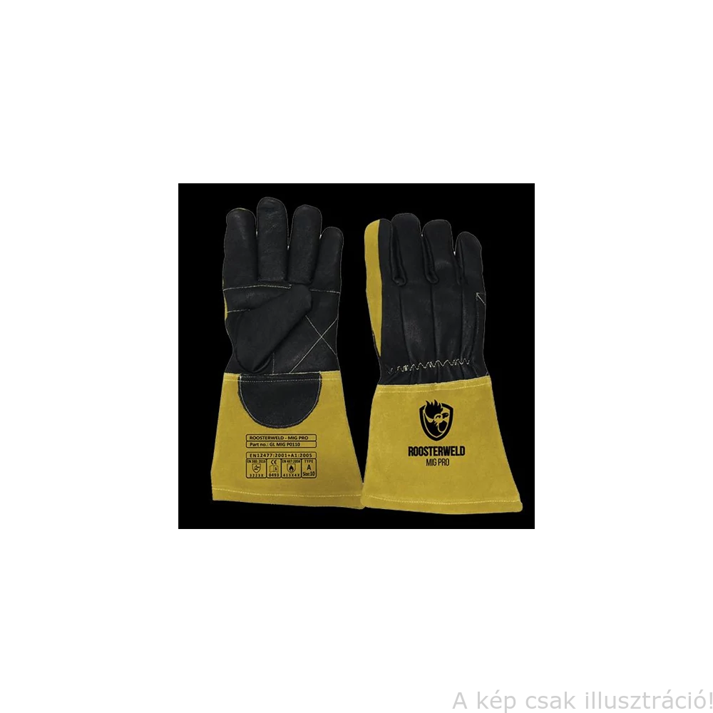 Hegesztő kesztyű kevlár erősítés, hasított marhabőr, teljesen bélelt, megerősített tenyérrész(10) ROOSTERWELD MIG PRO (sárga-fekete)