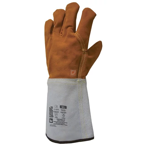 -1,2 mm vastag, kiváló minőségű, narancs színű hasított marhabőr hegesztő kesztyű