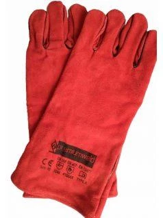Hő és szikraálló piros impregnált marhahasíték hegesztőkesztyű