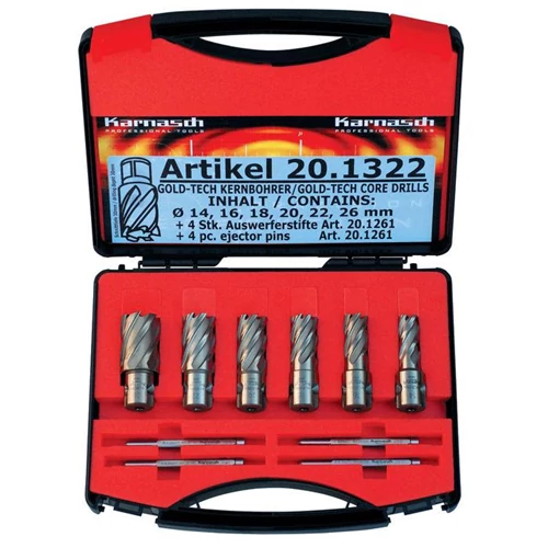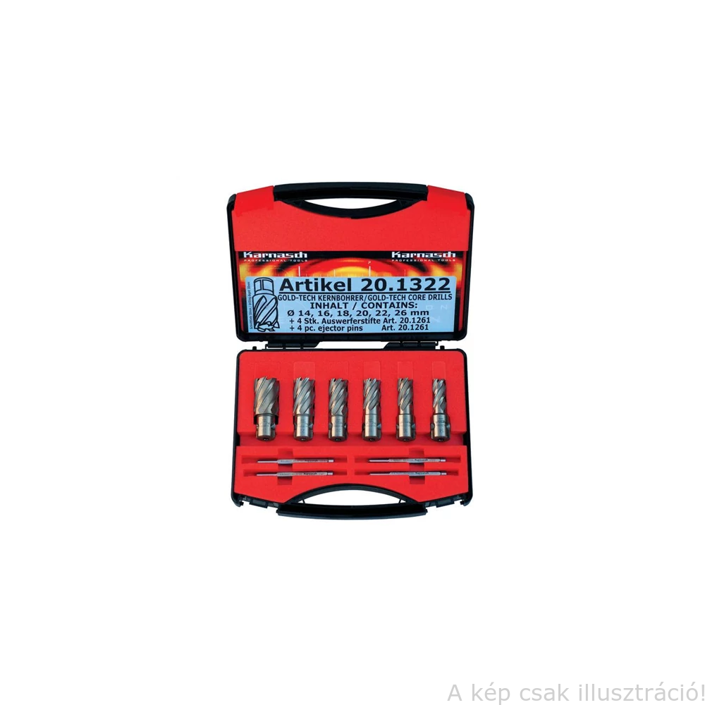 Koronafúró klt. GOLD-LINE 14/16/18/20/22/26mm / 30mm anyagv.-ig 19mm weldonszár OPTIMUM 38720.1322