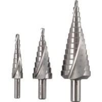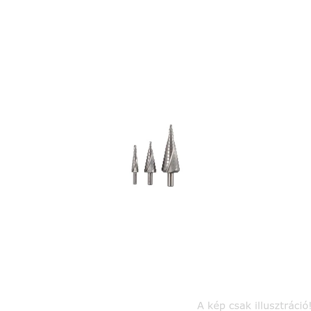 Három darabos lépcsős fúró készlet gyorsacélból gyártva, mely hosszú szerszámélettartamot és extra tartósságot biztosít.