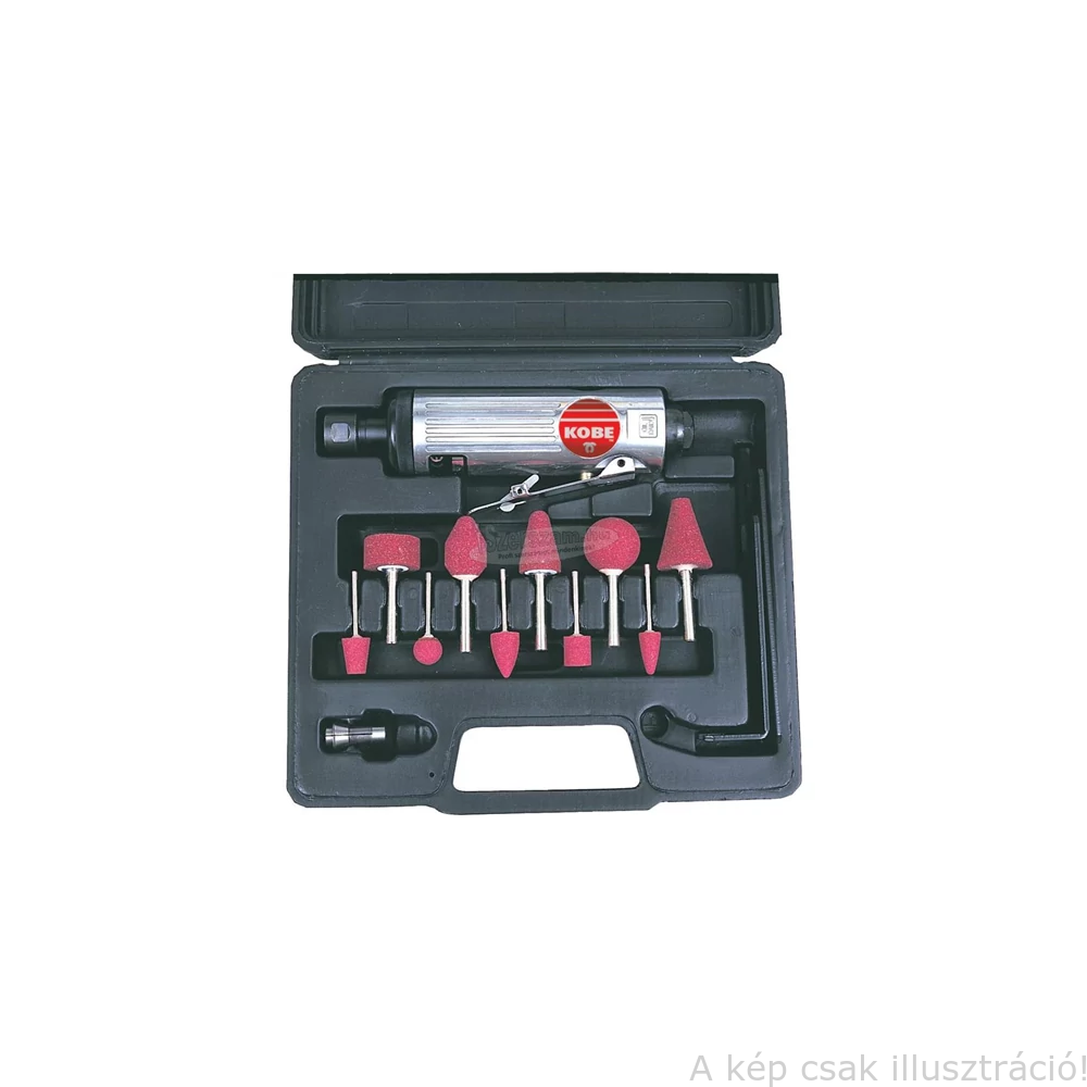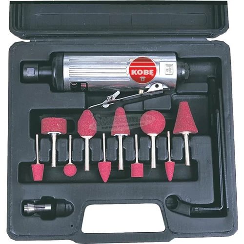 A készlet tartalma: GD2206L egyenes csiszoló biztonsági kapcsolóval működtetett fojtószeleppel, 3 és 6 mm-es szorítópatronok, 10 db-os csapos csiszolók' szortiment, robusztus fröccsöntött műanyag dobozban.