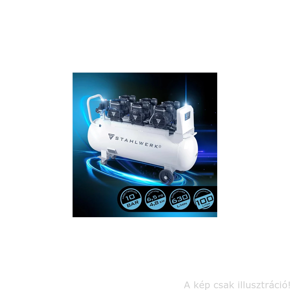 A csendes kompresszor lenyűgözően sima működésű és alacsony, mindössze 78 dB-es zajkibocsátással rendelkezik, még maximális teljesítményen is.