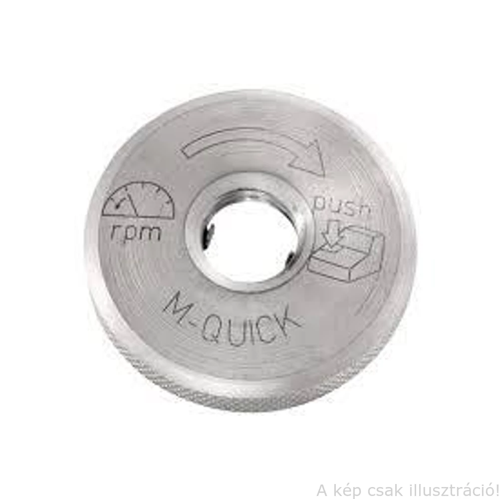 Speciálisan a Metabo Quick rendszerhez a szerszámmentes gombnyomásra történő tárcsacseréhez. Minden kis Metabo sarokcsiszolóhoz használható M Quick tengellyel, kivéve W 6-115, W 6-125, WB 11-125, szükséges menet M 14