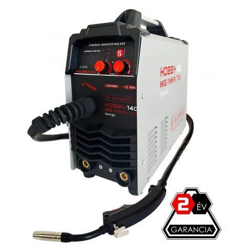 Az ALFAWELD HOBBY MIG-MMA-TIG 140A/230V szinergikus, IGBT inverteres, beépített munkakábellel rendelkező, hordozható MIG hegesztőgép MMA és Lift DC TIG funkcióval. A MIG funkció lehetővé teszi, mind a védőgázas, mind a védőgáz nélküli – porbéléses huzallal történő hegesztést is.