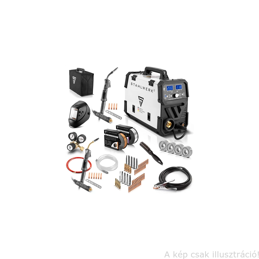MIG/MAG Heg.gép STAHLWERK 200 Pulse Pro IGBT,4görg. előtolóval,1-1db AK15& MB25 3m kábelek, pajzs,huzalok,reduktor 1140