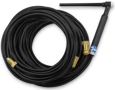 Genuine Weldcraft™ W-250, WP-20-12 is a 250 Amp Water-Cooled TIG torch with 12.5 ft. leads that features vinyl gas hose, water hose and power cable. It has a compact and lightweight body design, providing a comfortable grip and better torch control in all positions. Around-the-head water cooling minimizes overheating, extending the life of the torch and reducing downtime. The ergonomic torch design ensures proper relationship between the TIG torch and weld joint, with maximum comfort and maneuverability.