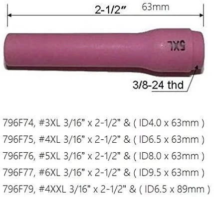 - Miller Ceramic Gas Nozzle for ABITIG GRIP 9, 20 and 20 SC Welding Torch, Standard Version, 63 mm Length, 8 mm Diameter, No. 5 Size (Pack of 10)