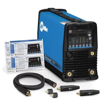 The Miller Dynasty 300 DX provides 300 amps AC/DC Tig & MMA welding output with a smooth stable arc. Advanced technologies, such as Pulse, reduce heat input, increase travel speeds and improve arc directional control.