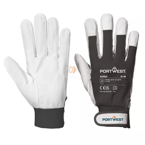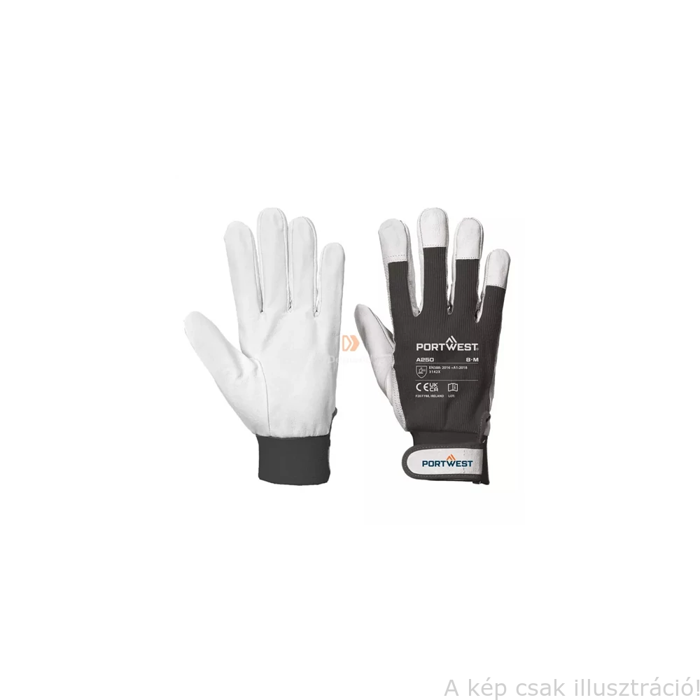 Kiváló minőségű tartós kecskebőr munkavédelmi kesztyű, tépőzáras rögzítéssel, pamut kézháttal és megerősített ujjvégekkel. Egyedi színkódolt méretezéssel, ami azt jelenti, hogy minden méretnek más és más színű a kézháta. Kiváló megoldás könnyű ipari munkákhoz. Kiakasztható kisker csomagolással készülő termék, CE minősítés. Jellemzők: Kiváló minőségű, tartós kecskebőrből készült. Szellőzést biztosító pamut kézhát, tépőzáras rögzítés a biztonságos illeszkedésért. Könnyű ipari munkákra alkalmas. A bőr tenyér jelentősen javítja a strapabírását. A megerősített panelek maximális tartósságot biztosítanak ott, ahol a legnagyobb igénybevételnek van kitéve. CE minősítés. Kiakasztható kisker csomagolással készülő termék.