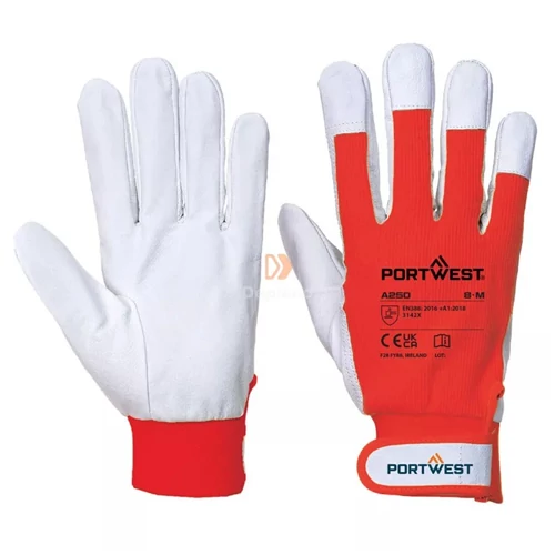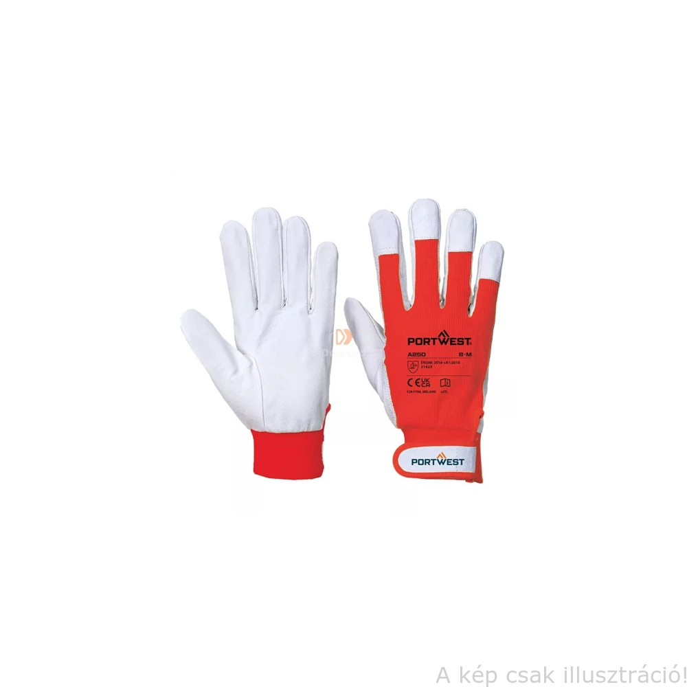 Muv. kesztyű A250 kecske hasítottbőr tenyérbélelt piros kézfej PORTWEST TERGSUS XL/10