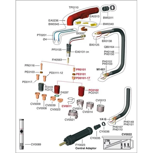 PLAZMA TRAFIMET A141 A100,A151--re is fúvóka "hosszú" 1,4mm,10db/csomag PD0117-14