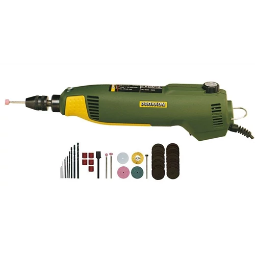 A 20.000/ perces legmagasabb fordulatszám hullám elektronikával fokozatmentesen leszabályozható 5.000/ perc fordulatra. Majdnem teljesen ugyanolyan forgató nyomatékkal az alsó fordulatszám tartományban. Ez különösen fontos finom fúrásnál, kefélésnél és polírozásnál. Golyóscsapágyas tengely ( szerszámcseréhez gombnyomásos rögzítéssel ) 20 mm –es rendszer-illesztés Micromot- fúróállványokba, vízszintes állványokba és felsőmaróra való illesztéshez.