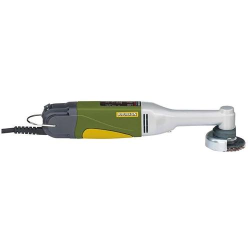 Fa vágására, nagyoló megmunkálására, csiszolására és faragására. Speciális kiegyensúlyozott, erős, csendes és hosszú élettartamú egyenáramú motor. Stabil fej üvegszállal megerősített POLIAMID-ból. Egy korund csiszolótárcsa (szemcse 60), egy lamellás csiszolótárcsa (szemcse 100) és egy megerősített vágótárcsa tartozik hozzá. Biztonságosan tárolható egy rendkívül stabil polipropilén tokban.