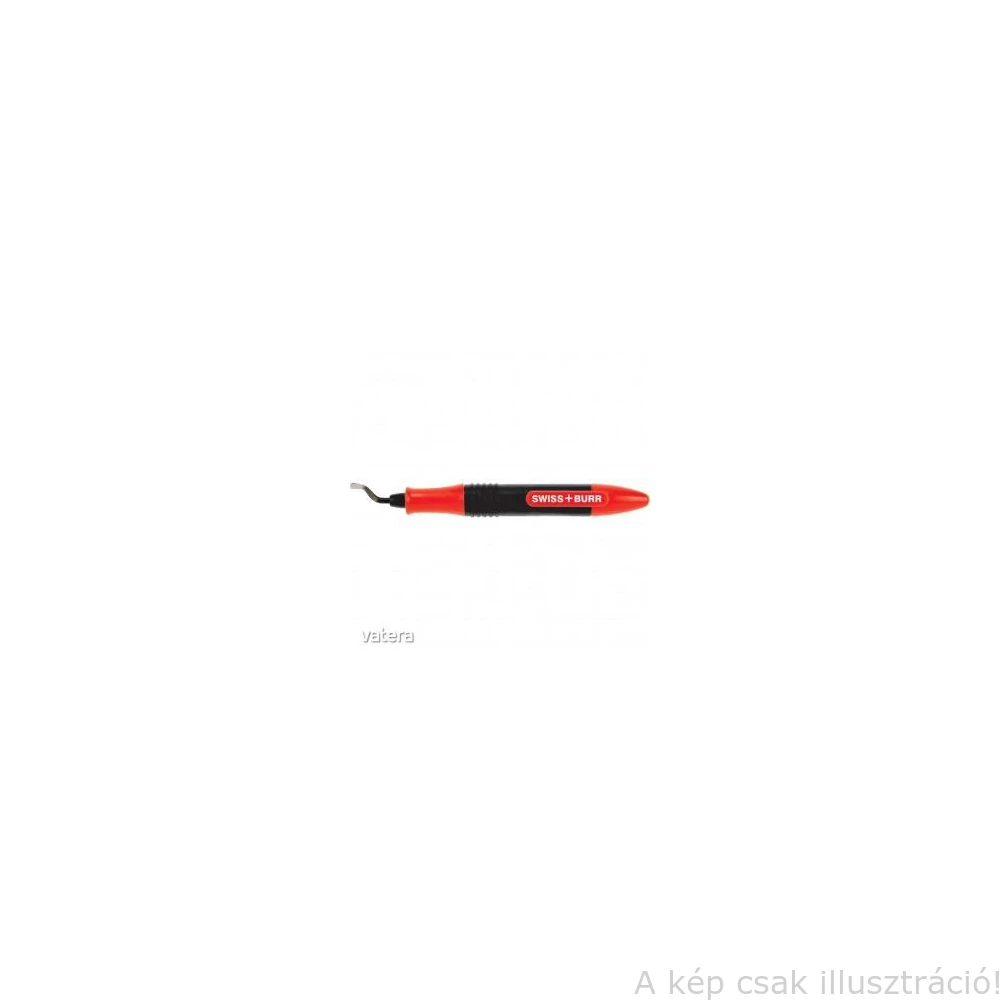 Könnyű, erős, jó fogású műanyag nyél zsebakasztóval + E100 sorjázó penge. A nyél alkalmas bármelyik E stílusú sorjázó penge befogására. A penge a nyélben tárolható.