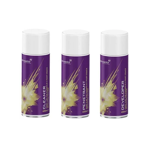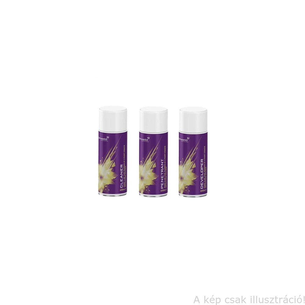- Körülbelül 20 cm távolságból az EXATEST3, fehér előhívót a felületre permetezzük. Túl sok előhívó, elfedheti a finom repedéseket. Körülbelül 5-10 perc elteltével, a repedések piros vonalként jelennek meg a felületen.