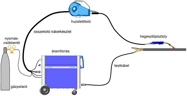 A fogyóelektródás védőgázas ívhegesztés különféle kialakítású hegesztőgépekkel végezhető el. Az egyszerűbb, fokozatkapcsolós gépeknél a fokozatkapcsolóval a használni kívánt lapos jelleggörbét lehet kiválasztani a fokozatkapcsoló megfelelő helyzetbe állításával. Ezzel a hegesztéshez szükséges feszültség értéket lehet meghatározni. A huzalsebesség fokozatmentesen állítható be, amivel meghatározható a leolvadási teljesítmény, illetve a hegesztőáram mértéke.