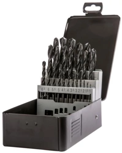 Labor Metal Drill Set DIN338 HSS-R Roll Forged 25-piece 1-13mm x0.5mm. For drilling in most common steel types, high fexlibility and break resistance.