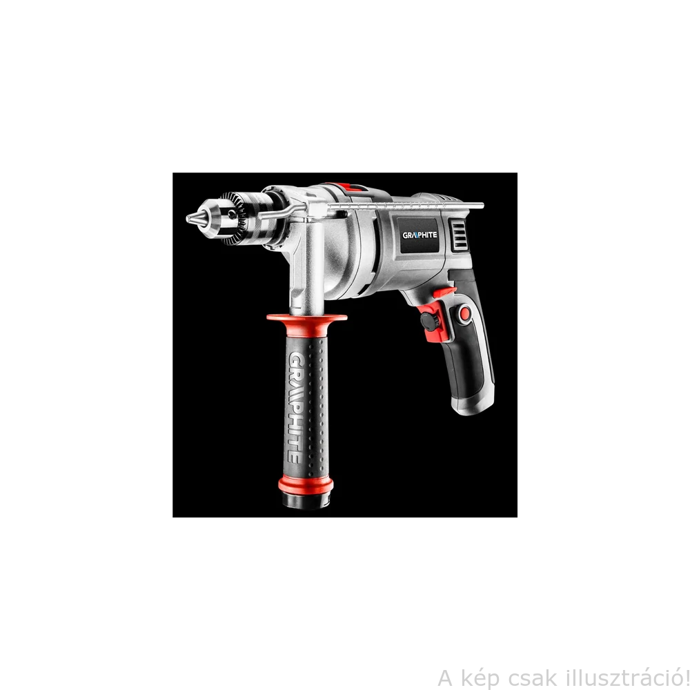 Az univerzális, 550 W teljesítményű GRAPHITE ütvefúróval könnyedén megmunkálhatók olyan anyagok, mint a fa, a műanyagok, a fémek, vagy a kerámiák. Az ütvefúrási üzemmódra kapcsolás után a fúrás olyan agyagokban is hasonlóan egyszerűvé válik, mint a tégla, vagy a beton. A fúrógép fordulatszáma fúrásnál eléri a 3 000 perc⁻¹ értéket, a bekapcsolt ütvefúrási üzemmódban az ütésszám egy perc alatt felmegy percenként 48 000-re. Az orsó forgásiránya kapcsolható jobbra és balra is. Az ergonómikus felépítés, a kis tömeg, valamint a hosszú hálózati csatlakozókábel határozottan megkönnyíti a munkavégzést a nehezen hozzáférhető helyeken is. A főmarkolat gumírozása növeli a munkavégzés kényelmét és biztonságát. Tárolását, szállítását könnyíti meg a pótmarkolatban kialakított fúrószár tartó és a praktikus hordtáska.