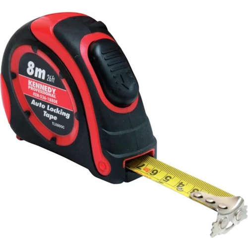 A mérőszalag automatikus zárral van ellátva, amely pozícióban tartja a szalagot használat során, majd a kiengedő gomb lenyomásával felcsévélhető.
