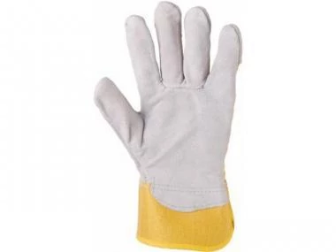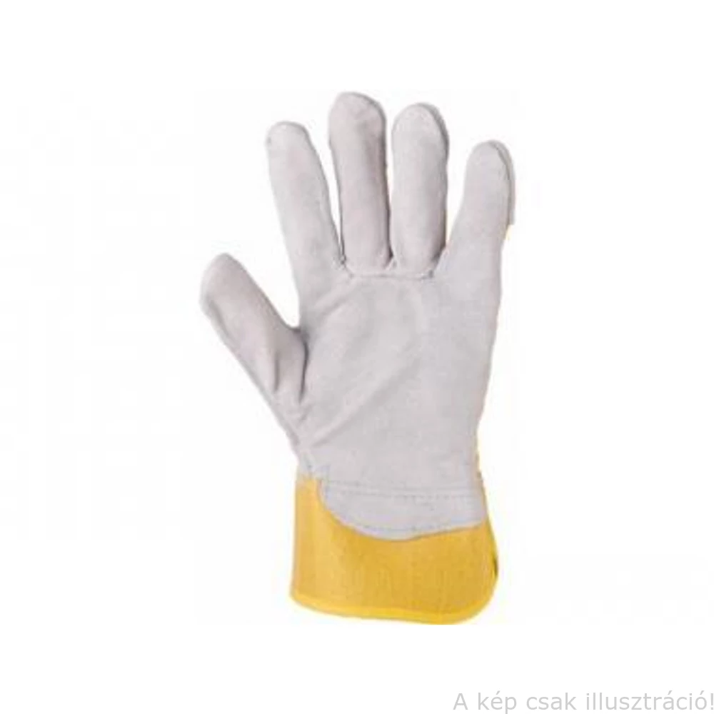 Erősített bőrkesztyű. Hátoldalán sárga pamut