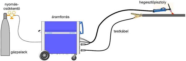 2. ábra A volfrámelektródás védőgázas ívhegesztés elrendezési ábrája